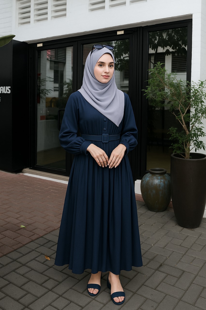 The Blue Eclipse Dress embodies modern modest sophistication with its deep midnight-blue tone — a color that feels both calming and confidently refined. Crafted from soft premium fabric, it offers a fluid drape that moves gracefully, ensuring comfort without compromising elegance.