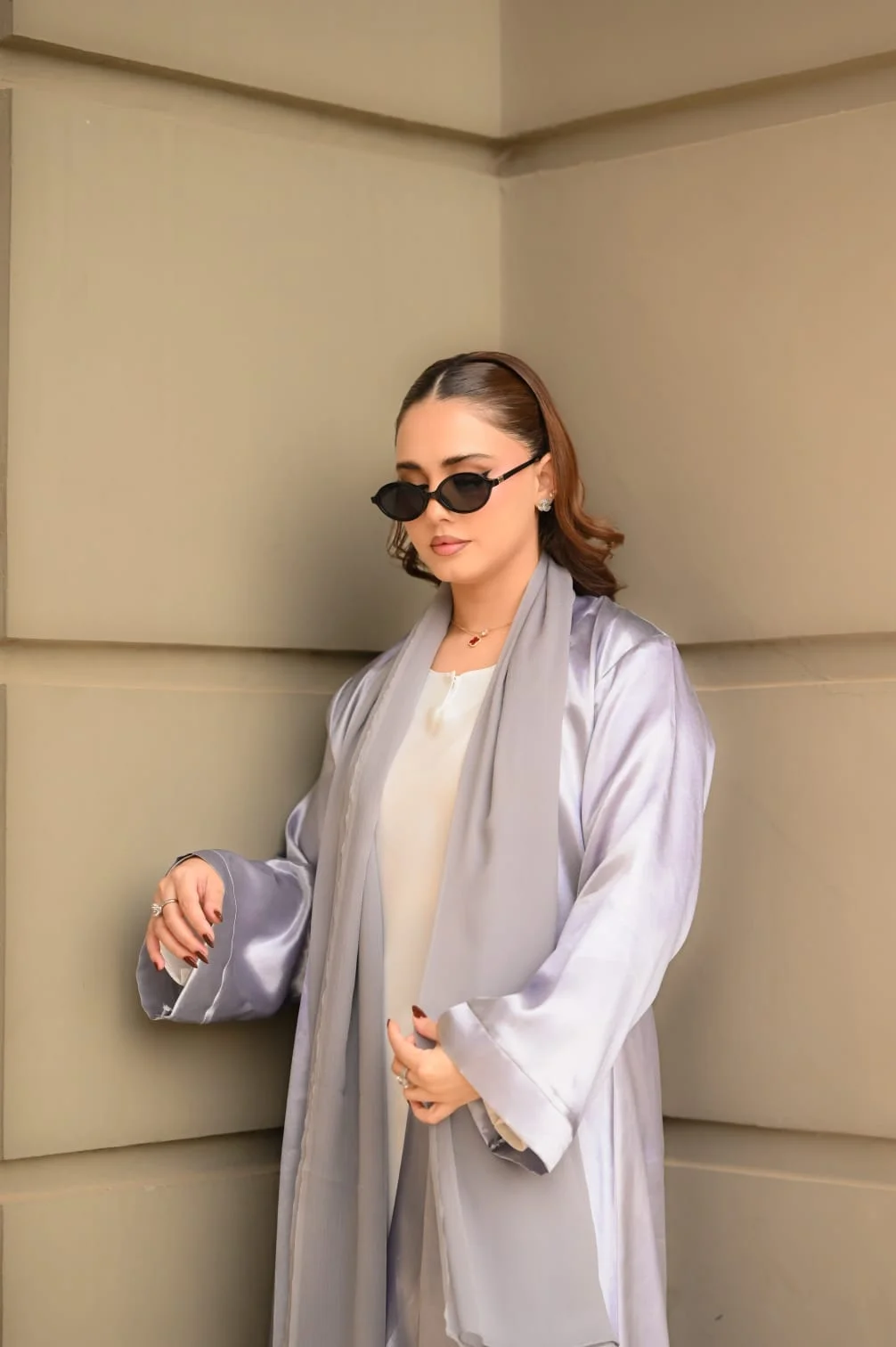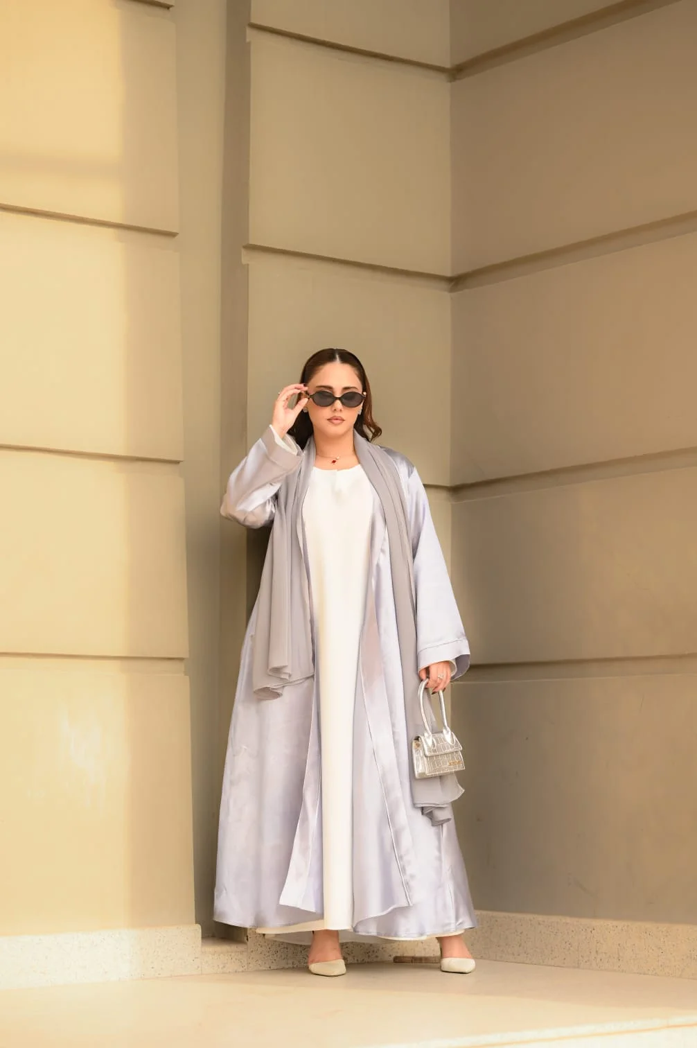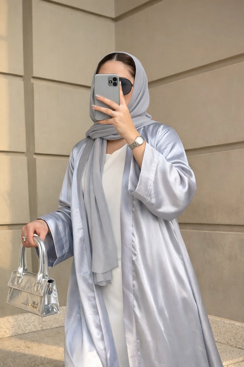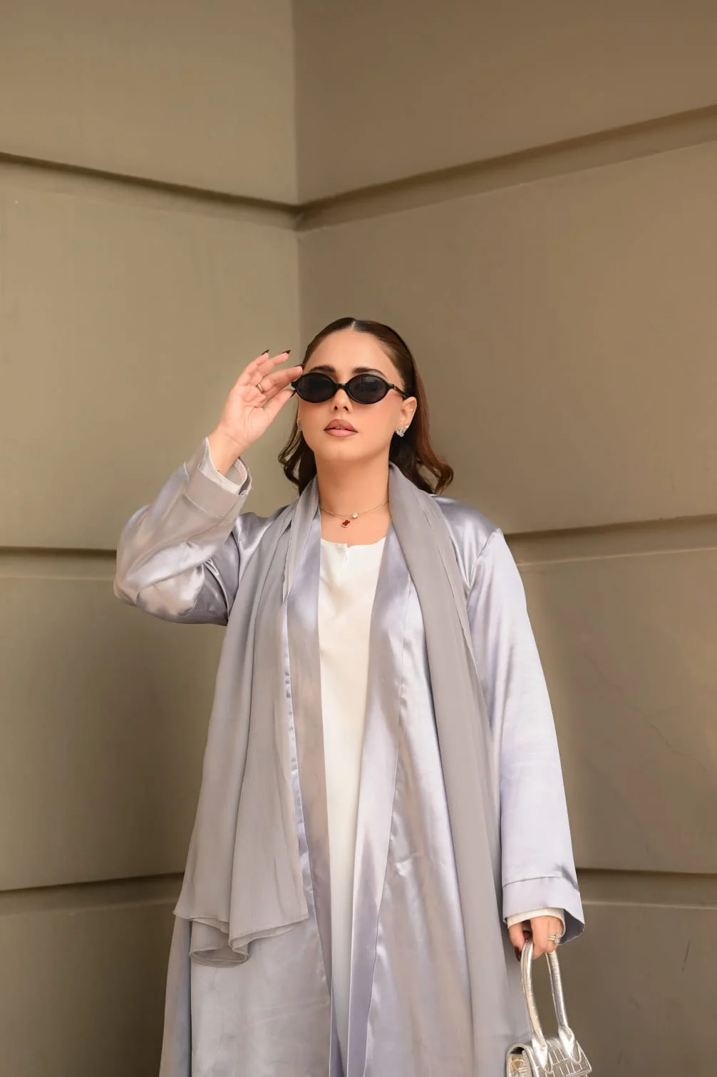 The Silver Serenity Abaya captures effortless modest sophistication in a soft, moonlit-silver tone — a colour that feels calm, elevated, and unmistakably refined. Designed in a silky premium fabric, it drapes fluidly over the silhouette, creating gentle movement with every step and offering day-long comfort without compromising elegance.