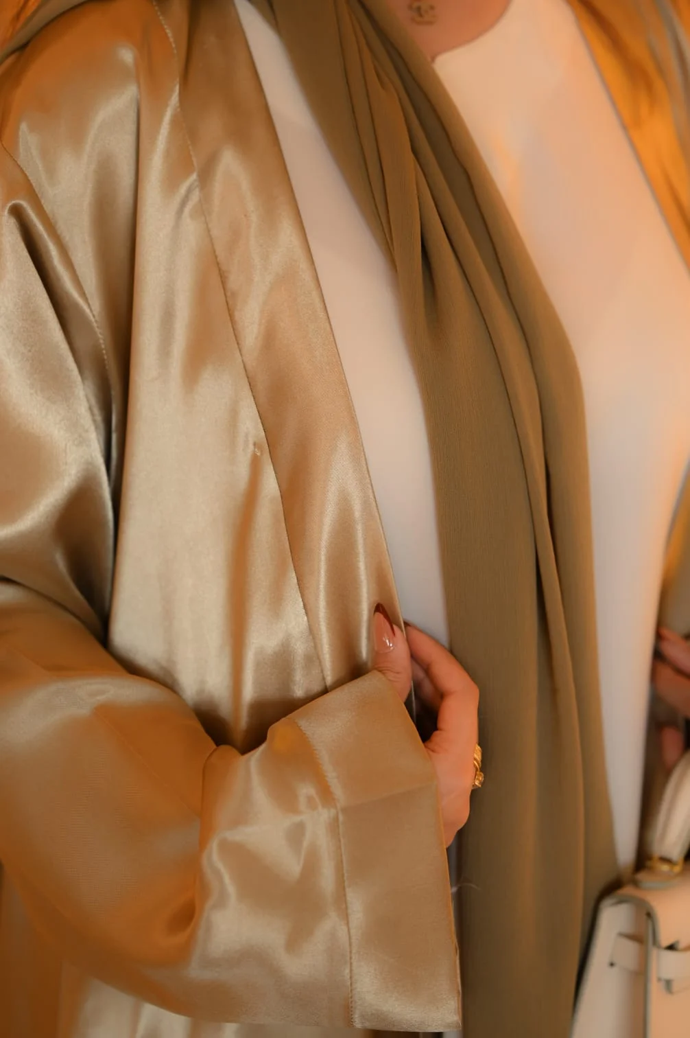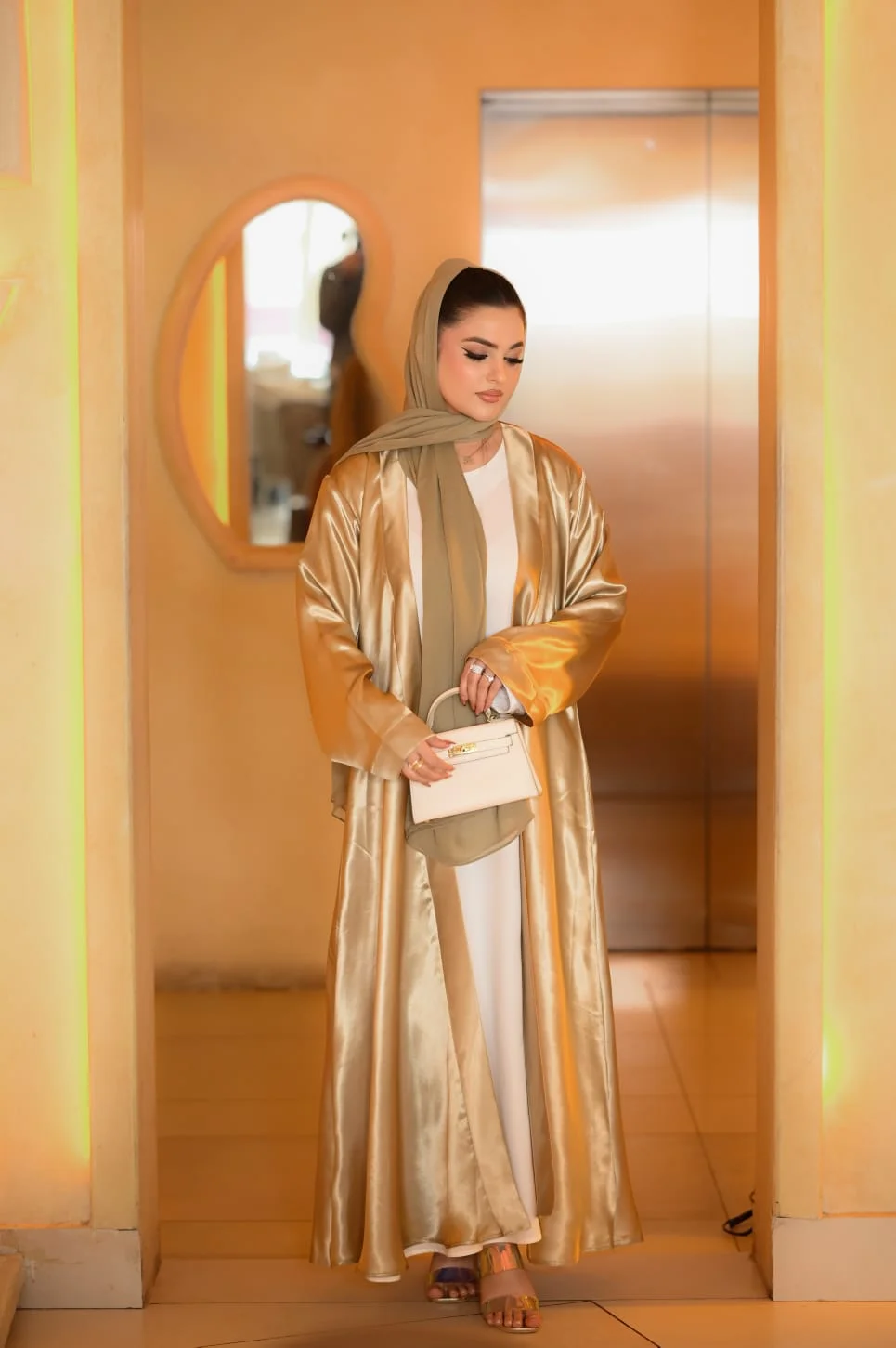 The Golden Serenity Abaya embodies timeless modesty with a touch of radiant warmth. Designed in a rich, soft gold hue, this piece reflects understated luxury while maintaining a graceful, modern silhouette.